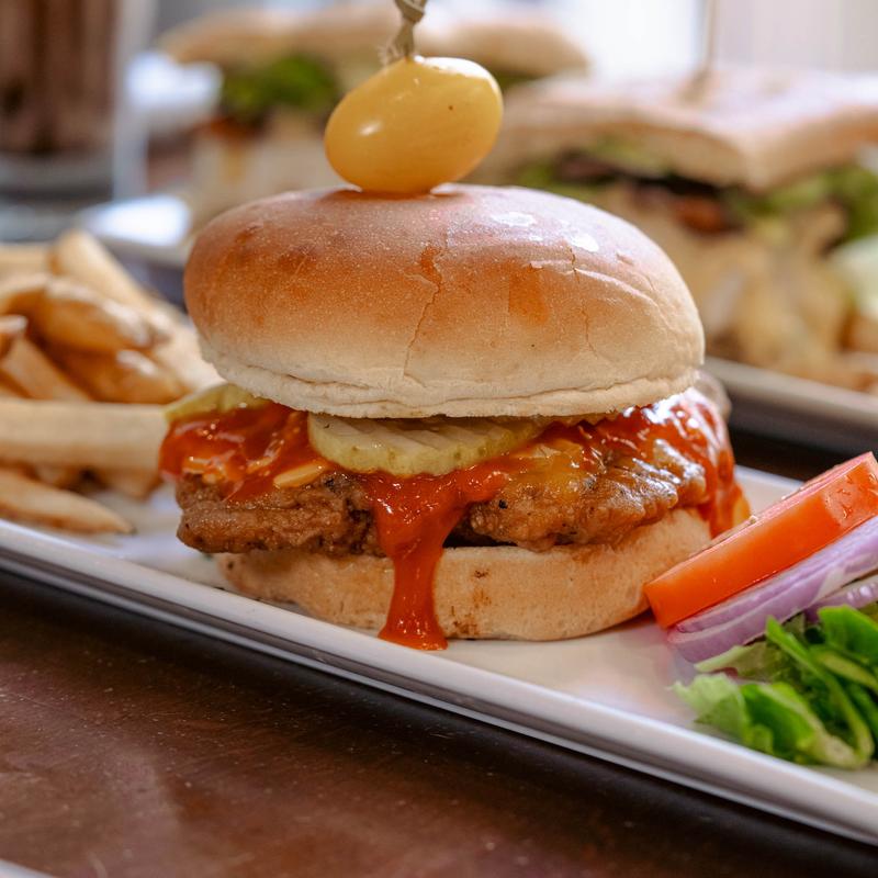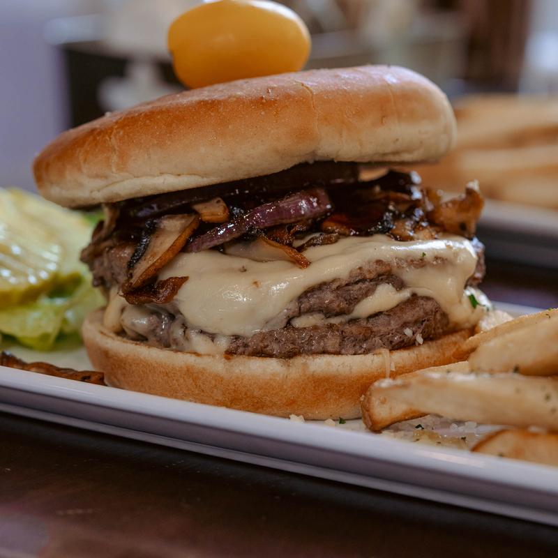 8 oz ground beef patty, American cheese, grilled onions, bacon and thousand island dressing. Served with your choice of fries or fruit.